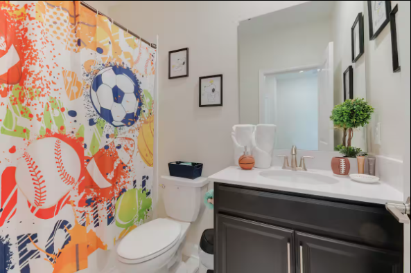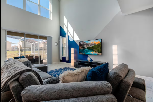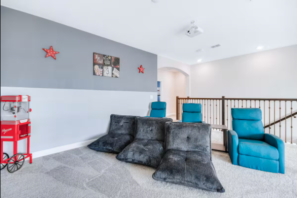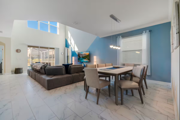 LuXuRy ViLLa with Private Pool, SPA and CiNeMa Featuring two master bedrooms. Enjoy this 5/5 home with everything you need for your vacations. House is in Champions Gate, 20 min to Disney and all local attractions. Amenities include pool, spa, water park, tennis courts, arcade, supermarkets, restaurants, and everything you need few min away from the resort.