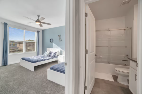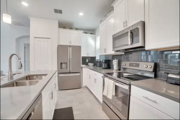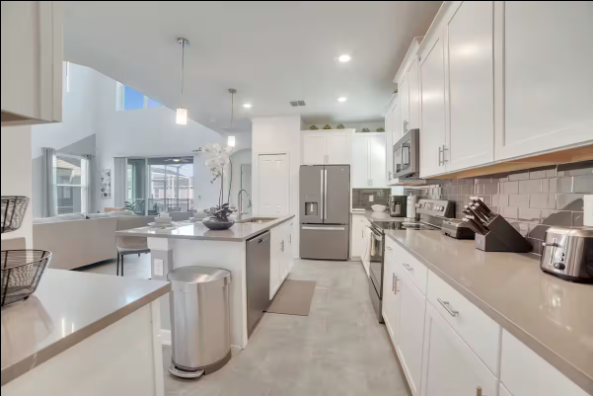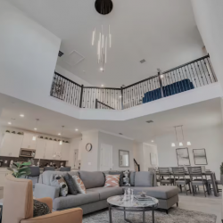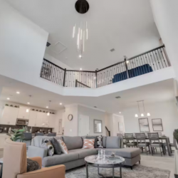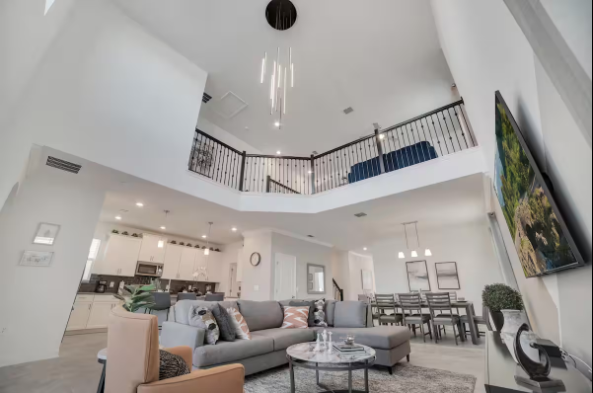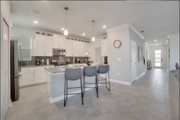 This stylish brand new villa featuring two master bedrooms. Enjoy this 5 bedrooms 5 bathrooms home with everything you need for your vacations. House is in Champions Gate, a golf community, 20 min to Disney and all local attractions. Amenities include pool, spa, water park, tennis courts, arcade, supermarkets, restaurants, and everything you need few min away from the resort.
